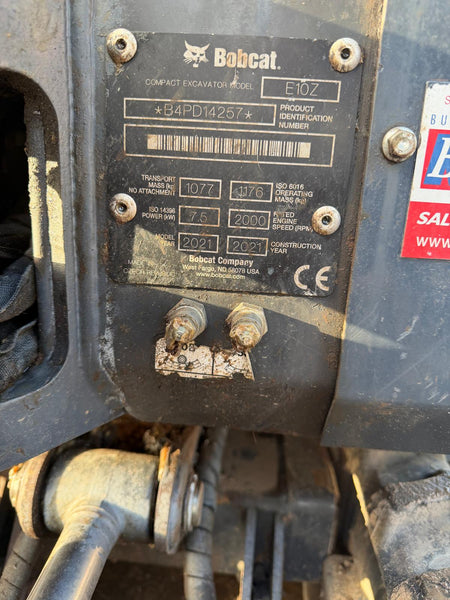 Used Bobcat E10z 2021  1170 Hours S/N B4PD14266