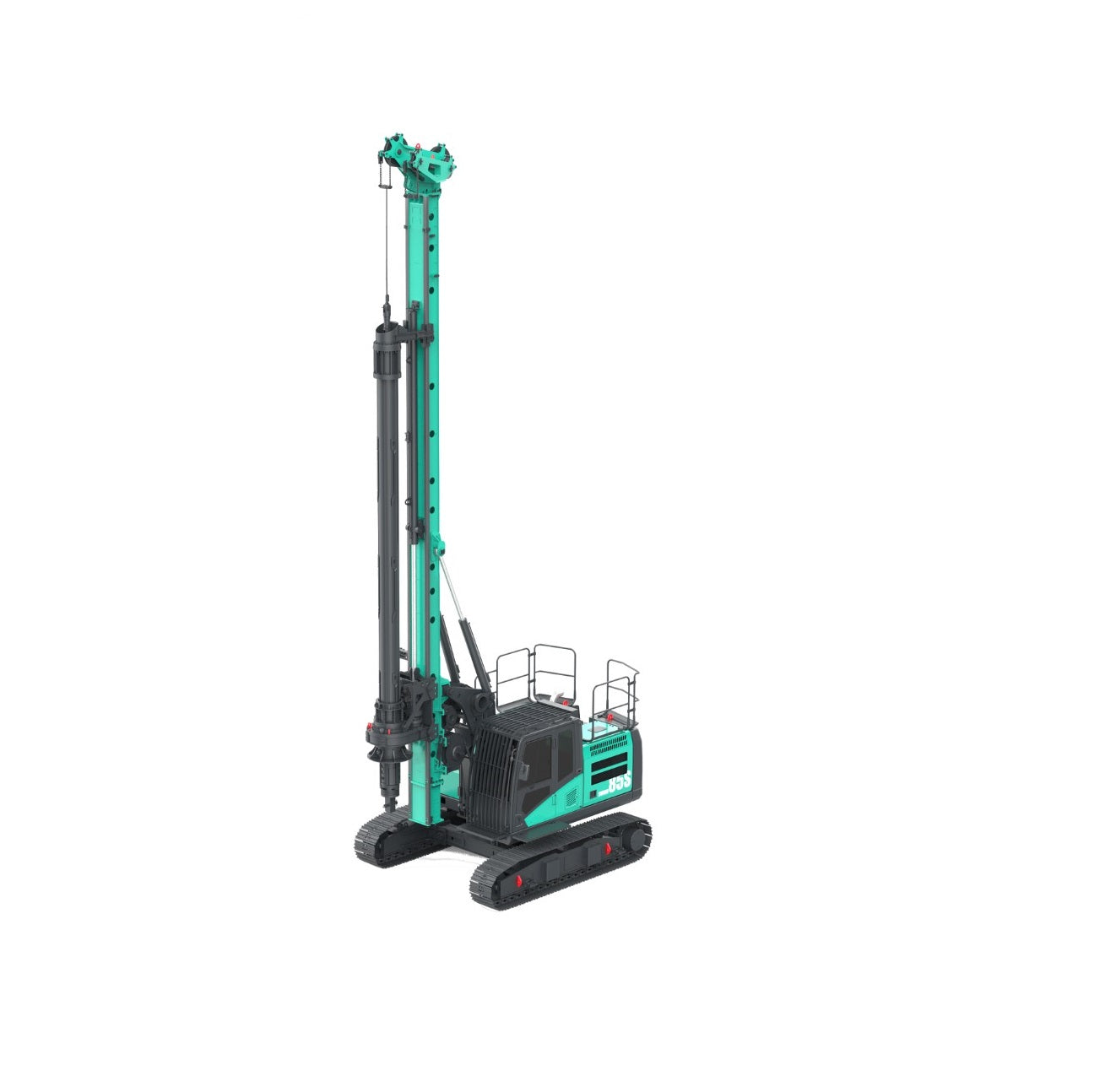 The drilling rig offers a range of convenient features, including the ability to transport the entire rig with the kelly without exceeding transport limits. This enables efficient mobility without compromising on transportation regulations. Additionally, the rig allows for a seamless shift between drilling and transport modes, resulting in significant cost savings. Further enhancing operational ease, a single button controls the mast’s elevation and lowering, simplifying and expediting operations.