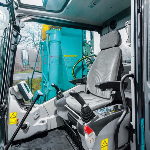 Last but not least, the latest standard equipment is the rear camera – which complements the large windows and glass rooftop to provide a 360° view, allowing to work safely and efficiently, without stress.