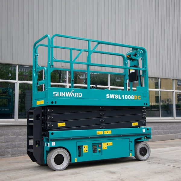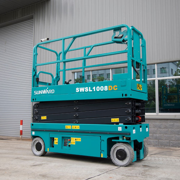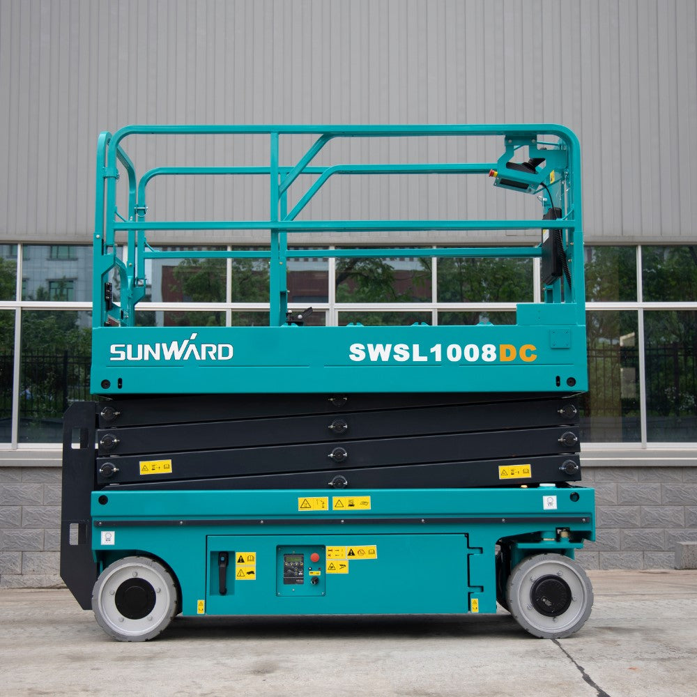 The Sunward SWSL 1008DC electric scissor lift features a zero emissions electric drive, making it durable and cost-effective.