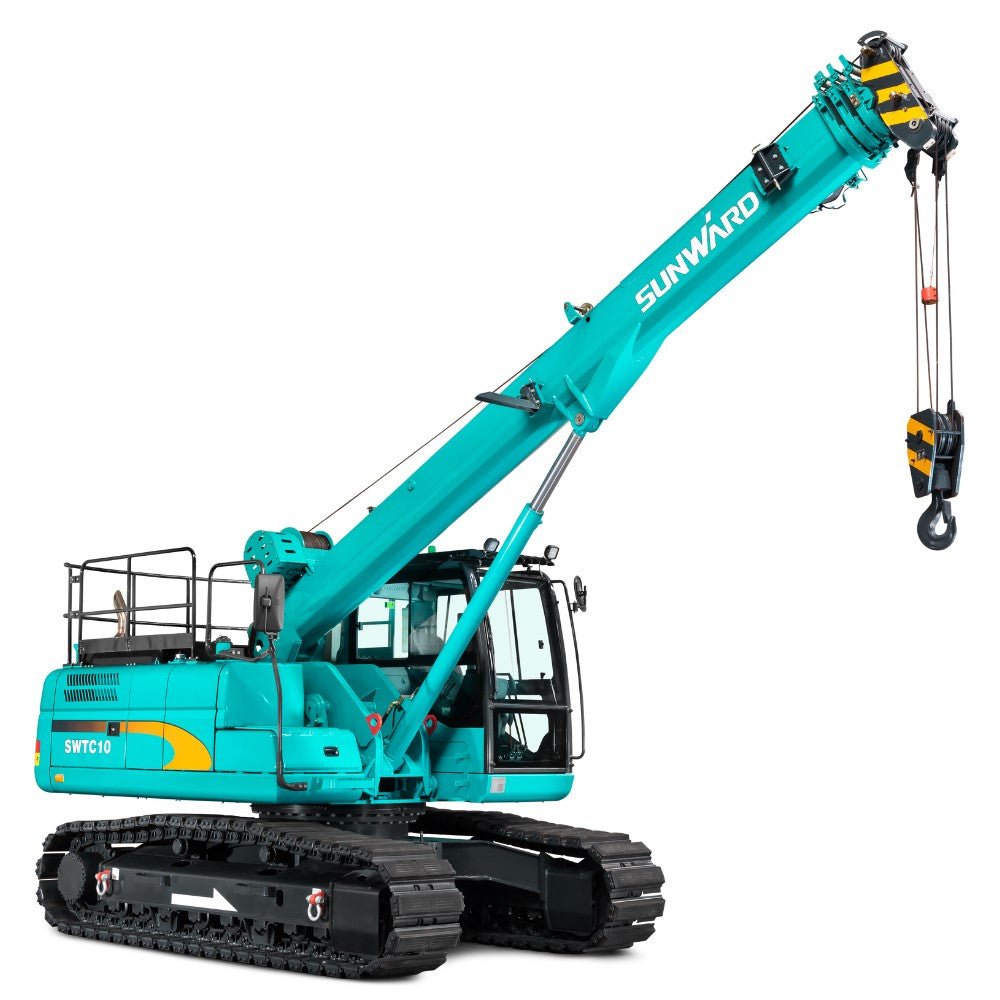 The Sunward SWTC 10 telescopic crawler crane offers the versatile combination of heavy-duty telescopic boom mounted on an undercarriage with a set of crawlers with compact dimensions.